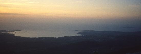 La côte sanaryenne se découpe sur fond de ciel coloré.